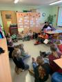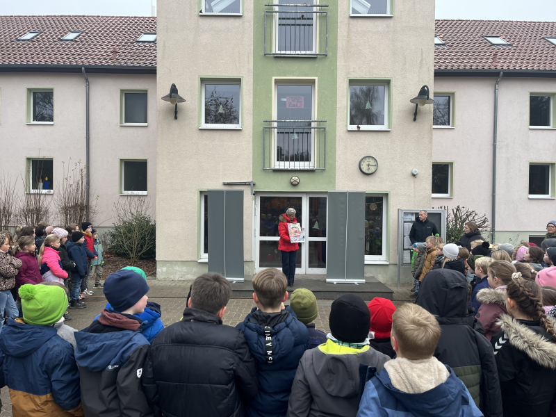 Am 21.11. findet jährlich der bundesweite Vorlesetag statt. Aus diesem Grund war am Freitag Frau Fuhrmann vom "Heimatverein Hohengrieben" bei uns und las den Kindern der 1. Klasse aus dem Buch "Der kleine Wolf findet einen Freund" vor. Die Schüler und Schülerinnen erfuhren in der Geschichte, wie wichtig Freunde sind, wie man einen Freund findet und wie toll sich eine Freundschaft zwischen ganz unterschiedlichen Tieren und Menschen anfühlt. Neben Freundschaftsgummibärchen und Ausmalbildern zum Thema hatte Frau Fuhrmann auch noch eine große, schwere Bücherkiste mitgebracht. Darin befanden sich über 20 Bücher für alle Altersklassen der Grundschule. Diese stehen nun in den Klassenbibliotheken und regen unsere Kinder zum Lesen an. Ein herzliches Dankeschön an den Hohengriebener Heimatverein für diese tolle Aktion!