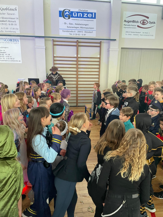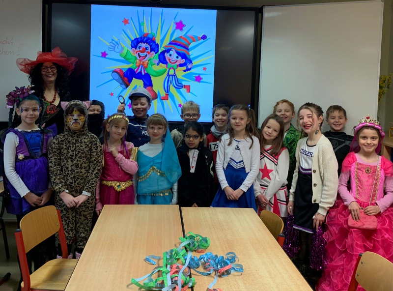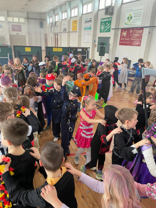 Heute stand unsere Schule ganz im Zeichen des Faschings! Zunächst wurde in den Klassen ausgelassen gefeiert, gemeinsam gefrühstückt und die fantasievollen Kostüme bestaunt. Anschließend zogen wir mit viel Krawall und guter Laune durchs Dorf - sogar Bonbons wurden uns zugeworfen. In der Turnhalle wartete schon der DJ auf uns. Unter dem Motto "Mädchen gegen Jungs" wurde getanzt, gespielt und gelacht. Es war ein fröhlicher und bunter Tag, an den sich alle sicher noch lange erinnern werden!