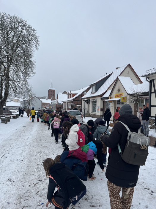 Am 16. Dezember war es wieder so weit: Die ganze Schule machte sich gemeinsam auf den Weg ins Theater nach Wolfsburg, um das diesjährige Weihnachtsmärchen "Urmel aus dem Eis" zu sehen. Für einige Kinder war es der erste Theaterbesuch - und dann durften wir sogar ganz vorne sitzen! Die Aufführung war spannend, lustig und voller Überraschungen. Besonders das Urmel hat uns alle begeistert. Es war ein gelungener Schultag, an den wir uns noch lange erinnern werden!