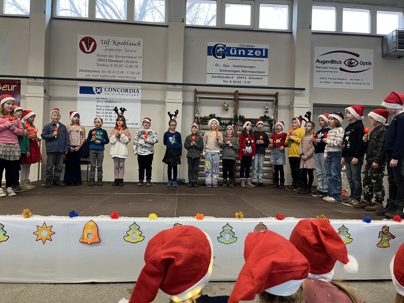 Am letzten Schultag vor den Weihnachtsferien wurde es in unserer Turnhalle festlich: Alle Klassen unserer Schule hatten in den vergangenen Wochen fleißig geprobt und präsentierten beim traditionellen Weihnachtskonzert ihre Beiträge. Von fröhlichen Liedern über kleine Theaterstücke bis hin zu spaßigen Tänzen war für jeden Geschmack etwas dabei.